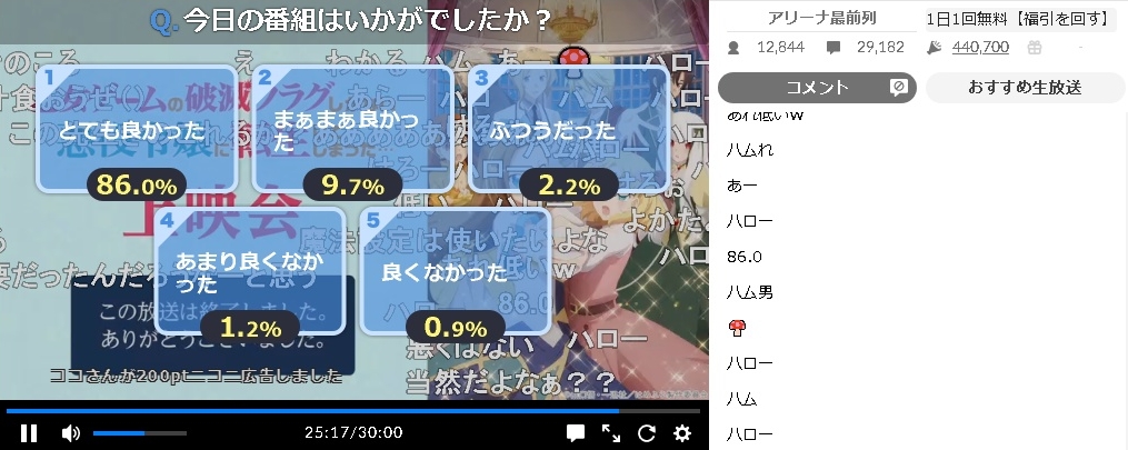 アンケートは「とても」が86.0%「まあまあ」が9.7%、計95.7%が「良かった」だった。