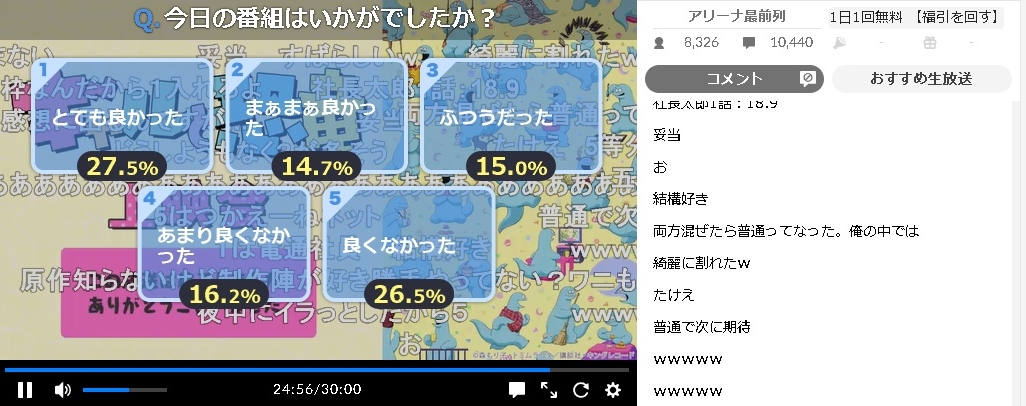この辺で、5分で終われば見れるとかツッコまれてた。