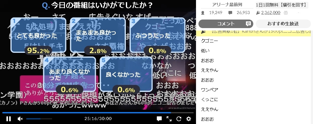 アンケートは「とても」が95.2%「まあまあ」が2.8%、計98.0%が「良かった」だった。